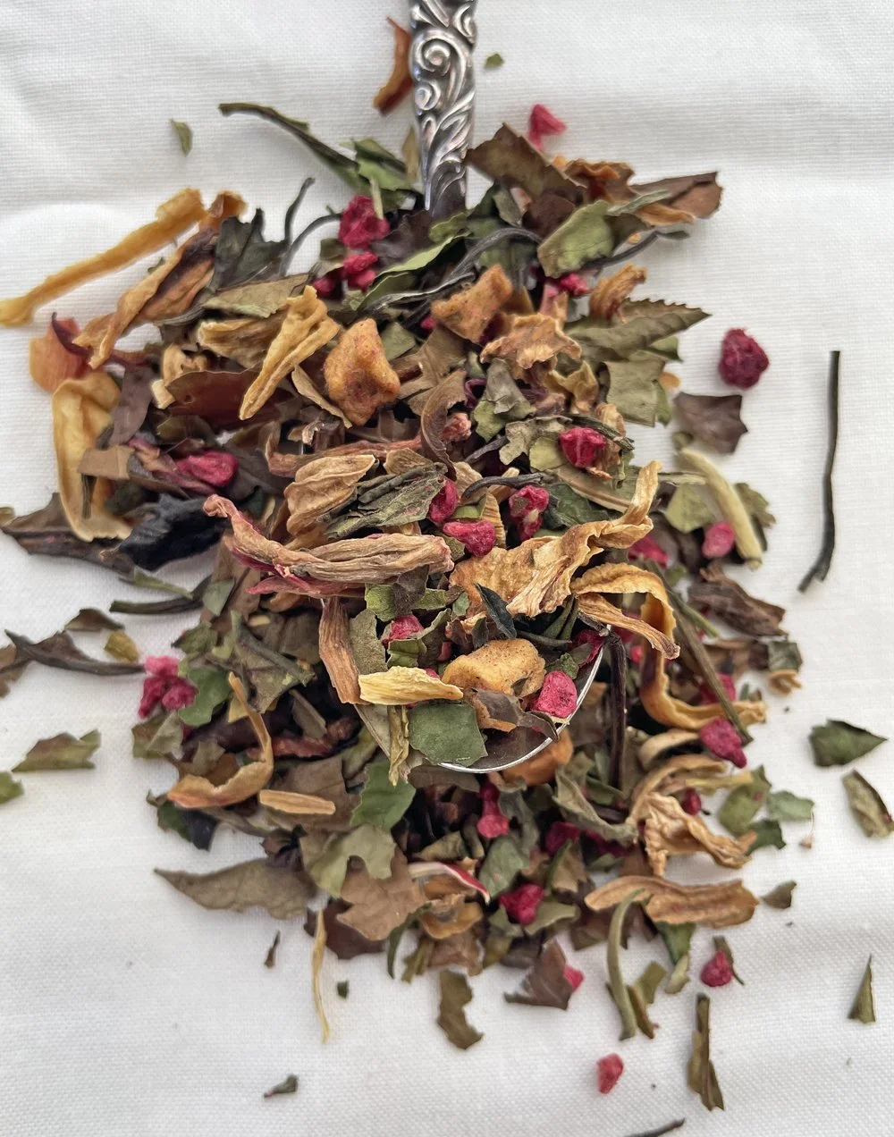 Ingredients: Oolong tea, peach pieces, apple pieces, marigold petals, peach and vanilla flavor